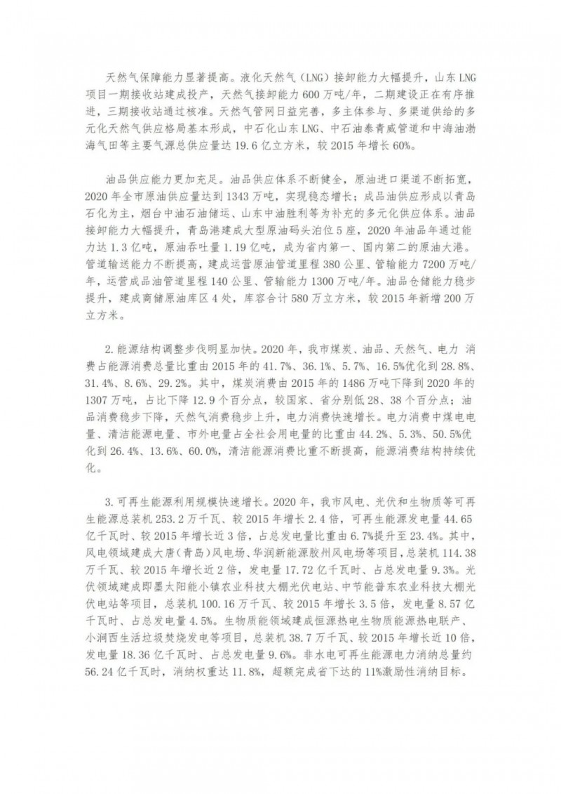 近日,山東青島市人民政府辦公廳印發(fā)了《關(guān)于印發(fā)青島市“十四五”能源發(fā)展規(guī)劃的通知》。提出了青島市“十四五”能源發(fā)展的主要任務(wù)和建設(shè)重點(diǎn)。實(shí)施可再生能源倍增計(jì)劃。以風(fēng)電、光伏發(fā)電為重點(diǎn),以生物質(zhì)能、海洋能、地?zé)崮艿葹檠a(bǔ)充。到2025年,可再生能源裝機(jī)容量新增270萬(wàn)千瓦左右,總裝機(jī)容量達(dá)到523萬(wàn)千瓦左右,占電力總裝機(jī)的比重提升至48%左右。