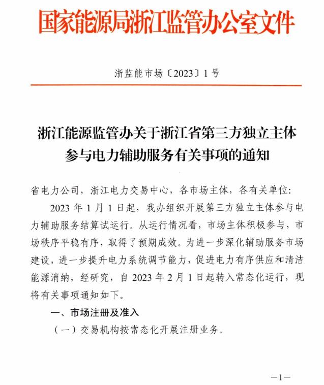 2月1日,國(guó)家能源局浙江能源監(jiān)管辦發(fā)布了關(guān)于浙江省第三方獨(dú)立主體參與電力輔助服務(wù)有關(guān)事項(xiàng)的通知。