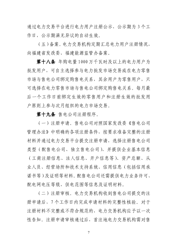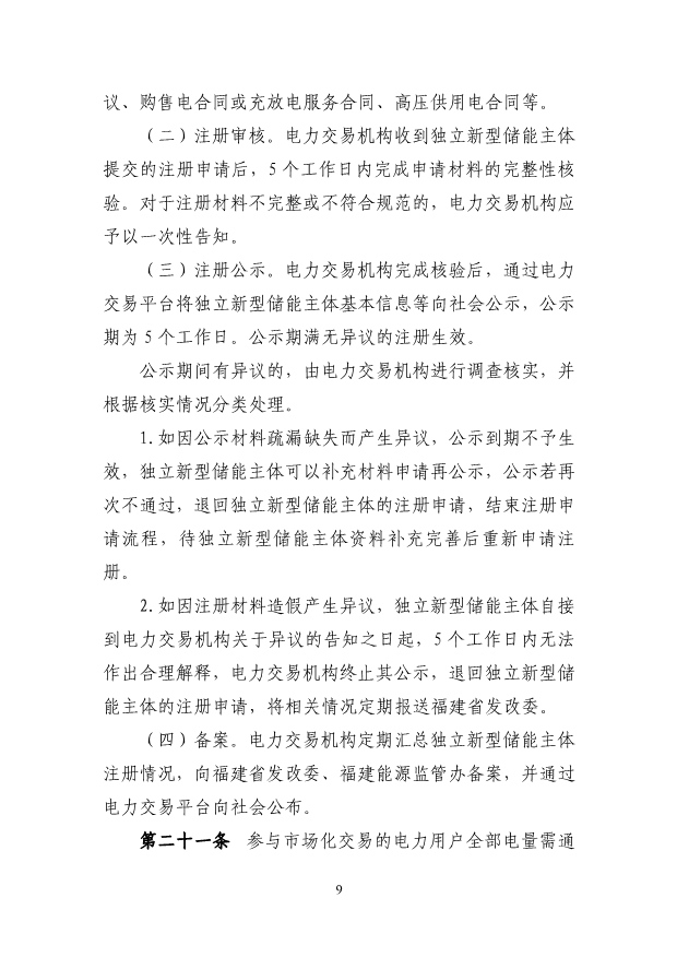 (三)獨(dú)立新型儲(chǔ)能主體參與電能量市場(chǎng)應(yīng)滿足最大充 放電功率、最大調(diào)節(jié)容量及持續(xù)充放電時(shí)間的準(zhǔn)入條件,充 電/放電功率不小于 1 萬千瓦,且持續(xù)時(shí)間不小于 1 個(gè)小時(shí)。 第八條 直接參與市場(chǎng)交易用戶(除居民、農(nóng)業(yè)用電電量 外)原則上應(yīng)全電量入市。已直接參與市場(chǎng)交易的高耗能用 戶,不得退出市場(chǎng)交易。