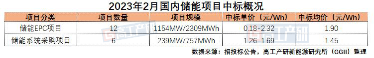 GGII:2月共18個(gè)儲能項(xiàng)目公布中標(biāo)結(jié)果 規(guī)模合計(jì)1.39GW/3.06GWh