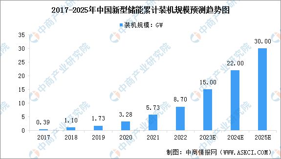 截至2021年底,我國已投運(yùn)的新型儲(chǔ)能裝機(jī)規(guī)模達(dá)5.73GW,同比增長74.70%。根據(jù)國家能源局發(fā)布的相關(guān)數(shù)據(jù),截至2022年底,全國已投運(yùn)新型儲(chǔ)能項(xiàng)目裝機(jī)規(guī)模達(dá)8.7GW,平均儲(chǔ)能時(shí)長約2.1小時(shí)。根據(jù)《關(guān)于加快推動(dòng)新型儲(chǔ)能發(fā)展的指導(dǎo)意見》,預(yù)計(jì)到2025年國內(nèi)新型儲(chǔ)能裝機(jī)規(guī)模將增至30GW。