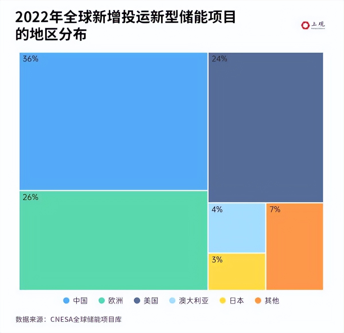 中國也是全球儲能市場發(fā)展的主力軍。據(jù)統(tǒng)計,在全球已投運(yùn)電力儲能項(xiàng)目累計裝機(jī)規(guī)模中,2022年中國占四分之一,且依舊保持著較高的年增長率(38%)。2022年,以鋰電池儲能為代表的新型儲能在中國新增7.3吉瓦/15.9吉瓦時,占比全球第一(36%)。