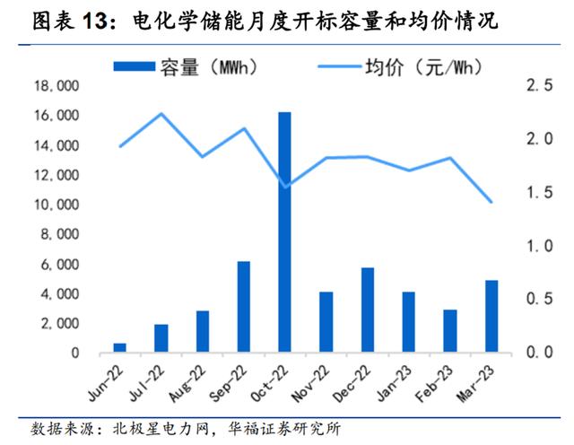 華福證券數(shù)據(jù)顯示,當月電化學儲能項目中標均價僅為1.41元/kWh,同比下降22.53%,其中儲能系統(tǒng)設備中標均價僅為1.23元/Wh。