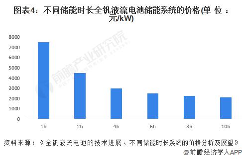 綜合考慮殘值后,儲能時長分別為 4h、10h 的全釩液流電池系統(tǒng)實際成本僅為 1875 元 /kWh、1020 元 /kWh。因此,從生命周期角度來講,全釩液流電池具有性價比高、經(jīng)濟性好、環(huán)境負荷低的優(yōu)勢。