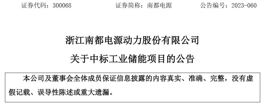 浙江南都電源動力股份有限公司中標中國移動工業(yè)儲能項目