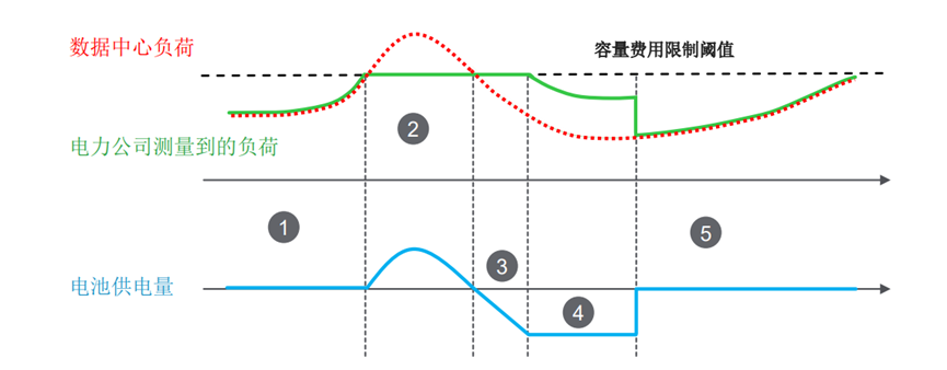施耐德在發(fā)表的一篇白皮書中提到儲(chǔ)能型UPS 能以非常規(guī)則的方式調(diào)節(jié)電網(wǎng)所測(cè)量到的負(fù)荷。如此可以將數(shù)據(jù)中心峰值電力容量需求最小化,使用UPS之前儲(chǔ)存好的電量,避免在用電高峰期支付高價(jià)電費(fèi),降低容量費(fèi)用。