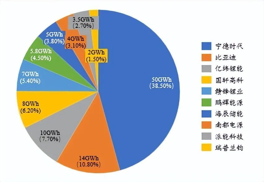 圖表 12:2022年全球鋰電池儲(chǔ)能出貨量及市占率 單位:GWh,%