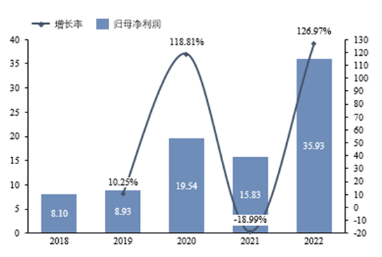 圖表 21:2018-2022年英克維歸母凈利潤及增速 單位:億元,%