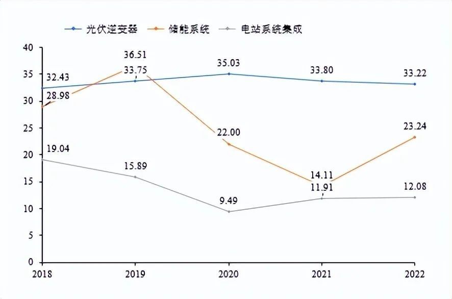 圖表 19:2018-2022年陽光電源主要業(yè)務(wù)毛利趨勢(shì) 單位:%