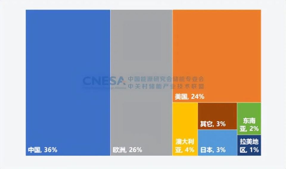2022年,全球儲(chǔ)能市場(chǎng)繼續(xù)高速發(fā)展,新增投運(yùn)電力儲(chǔ)能項(xiàng)目裝機(jī)規(guī)模30.7GW,同比增長98%。其中,新型儲(chǔ)能新增投運(yùn)規(guī)模首次突破20GW,達(dá)到20.4GW,是2021年同期的2倍。中國、歐洲和美國繼續(xù)引領(lǐng)全球儲(chǔ)能市場(chǎng)的發(fā)展,三者合計(jì)占全球市場(chǎng)的86%,比2021年同期上升6個(gè)百分點(diǎn)。
