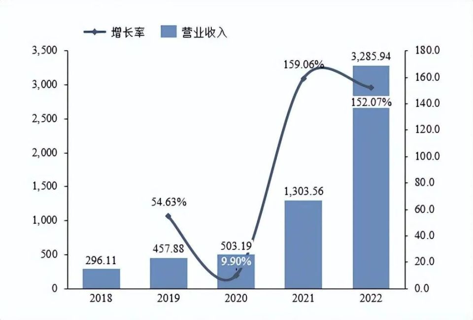 圖表 16:2018-2022年陽光電源營業(yè)收入及增速 單位:億元,%