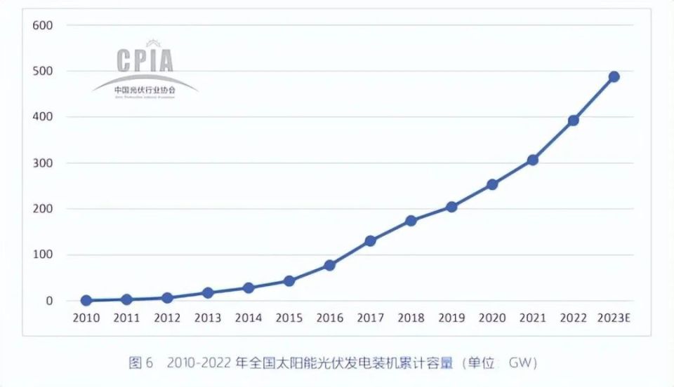 2020年9月,國家主席習(xí)近平在第七十五屆聯(lián)合國大會(huì)上鄭重宣布:“中國將提高國家自主貢獻(xiàn)力度,采取更加有力的政策和措施,二氧化碳排放力爭于2030年前達(dá)到峰值,努力爭取2060年前實(shí)現(xiàn)碳中和”,由此拉開了“雙碳”目標(biāo)這一新時(shí)代發(fā)展主題的帷幕。雙碳背景下,推動(dòng)能源革命、構(gòu)建以新能源為主體的新型電力系統(tǒng)成為全球共識(shí)。據(jù)中國光伏行業(yè)協(xié)會(huì)(CPIA)的統(tǒng)計(jì),2018年由于“531”光伏新政出臺(tái),淘汰落后中小企業(yè)產(chǎn)能,行業(yè)加速出清,國內(nèi)新增光伏裝機(jī)量44.3GW,同比下降16.4%。2019年光伏競價(jià)政策出臺(tái)較晚、項(xiàng)目建設(shè)時(shí)間短,國內(nèi)光伏新增裝機(jī)再度下降至30.1GW,同比下降32%。2022年全國新增光伏并網(wǎng)裝機(jī)容量87.41GW,累計(jì)光伏并網(wǎng)裝機(jī)容量達(dá)到392.6GW,新增和累計(jì)裝機(jī)容量均為全球第一。全年光伏發(fā)電量為4,276億千瓦時(shí),同比增長30.8%,約占全國全年總發(fā)電量的4.9%。預(yù)計(jì)2023年光伏新增裝機(jī)量超過95GW,累計(jì)裝機(jī)有望超過487.6GW。