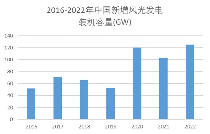 目前,國際公認全球80%以上的二氧化碳等溫室氣體排放來自于化石能源的使用,我國作為全球二氧化碳排放總量最高的國家,電力行業(yè)排放占比高達41%,在國家經(jīng)濟態(tài)勢快速發(fā)展的情況下,碳排放壓力日益增大,因此擺脫對化石能源的依賴,大力發(fā)展新能源,推動能源清潔低碳高效利用對于我國碳達峰碳中和目標的實現(xiàn)具有重要意義。2022年,我國風電、光伏發(fā)電新增裝機連續(xù)第三年突破1億千瓦,達到1.25億千瓦,占可再生能源新增裝機的82.2%,再創(chuàng)歷史新高,已成為我國電力新增裝機的主體。全年風電、光伏發(fā)電量首次突破1萬億千瓦時,達到1.19萬億千瓦時,同比增長21%。
