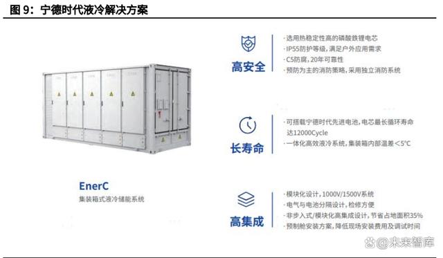 各大主流集成廠商近年來均推出了液冷產(chǎn)品,在能量密度、電池壽命上較風 冷產(chǎn)品有了顯著提升。陽光電源的 PowerTitan 產(chǎn)品采用液冷溫控的方式,實 現(xiàn)了所有電芯溫差小于 2.5℃,使電池壽命延長 2 年以上。海博思創(chuàng)的HyperA2-C3354、HyperA2-C6709 產(chǎn)品采用了同程均衡液冷管路設計,實現(xiàn)了 溫差不超過 3℃,電池壽命延長 20%。比亞迪的 Cube T28 產(chǎn)品采用了液冷技術, 空間利用率遠遠高于傳統(tǒng)預留風道的風冷系統(tǒng)。寧德時代的 EnerC 產(chǎn)品,能量 密度較傳統(tǒng)風冷系統(tǒng)提高了近兩倍,可將單簇 416 個電芯溫差控制在 3°C 以內(nèi), 全系統(tǒng) 4160 個電芯溫差控制在 5°C 以內(nèi)。