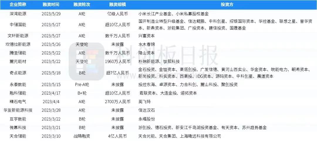 儲能領(lǐng)域一級市場融資火熱
