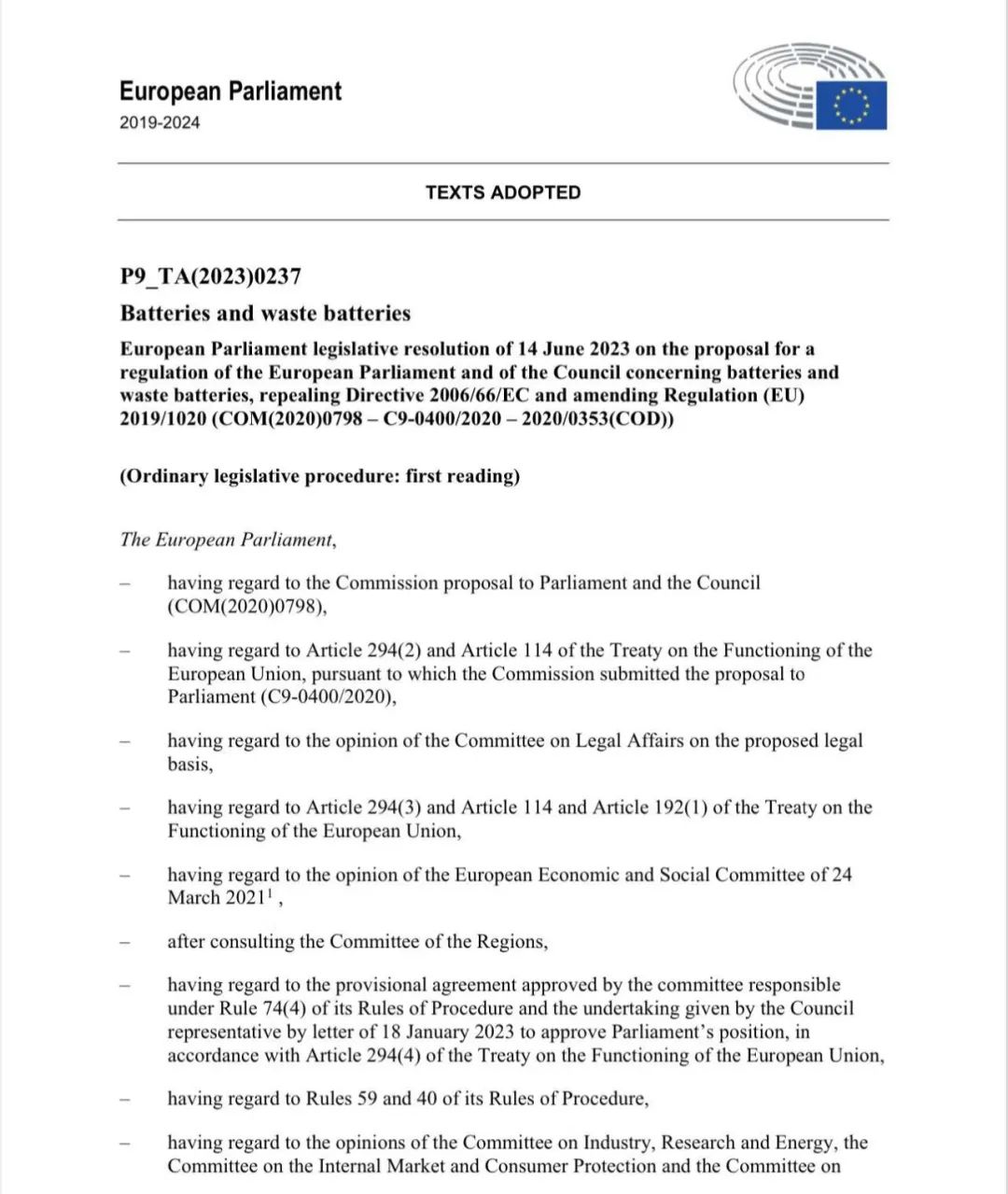 8月17日,歐盟公示滿20天的《歐盟電池和廢電池法規(guī)》(以下簡稱《新電池法》)便將正式生效。
