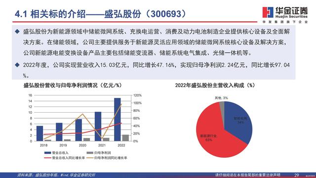 盛弘股份為新能源領(lǐng)域中儲能微網(wǎng)系統(tǒng)、充換電運(yùn)營、消費(fèi)及動力電池制造企業(yè)提供核心設(shè)備及全面解決方案。在儲能領(lǐng)域,公司主要提供服務(wù)于新能源靈活應(yīng)用領(lǐng)域的儲能微網(wǎng)系統(tǒng)核心設(shè)備及解決方案,公司新能源電能變換設(shè)備產(chǎn)品主要包括儲能變流器、儲能系統(tǒng)電氣集成、光儲一體機(jī)等。 2022年度,公司實(shí)現(xiàn)營業(yè)收入15.03億元,同比增長47.16%,實(shí)現(xiàn)歸母凈利潤2.24億元,同比增長97.04%。