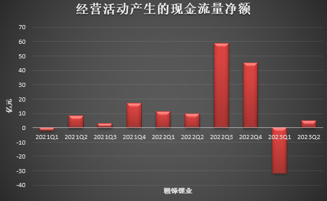 好在二季度,隨著鋰價(jià)在30萬元/噸企穩(wěn),中下游廠商在一季度過度去庫存以后,二季度的采購也有所回調(diào),贛鋒鋰業(yè)的經(jīng)營活動(dòng)現(xiàn)金流因此也有所回暖,重新回歸正數(shù)達(dá)到4.78億元,但是相較去年同期的高景氣水平依舊有較大差距。