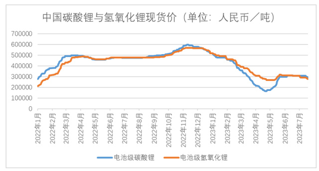 以澳洲鋰精礦廠商為例,今年上半年的鋰精礦價(jià)格大部分仍處于4000美元/噸以上區(qū)間,雖然二季度環(huán)比有20%左右的下調(diào),但是整體相較去年同期,其實(shí)下滑幅度并不大,在10%以內(nèi)。