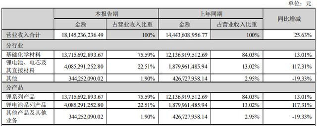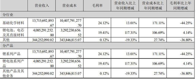 今年上半年,贛鋒鋰業(yè)的鋰電池系列產(chǎn)品營業(yè)收入達(dá)到40.85億元,同比增長117.31%,占比首度突破20%達(dá)到22.5%,毛利率更是增長了4.14個(gè)百分點(diǎn)到19.41%,成為贛鋒鋰業(yè)唯一實(shí)現(xiàn)毛利率正增長的業(yè)務(wù)。