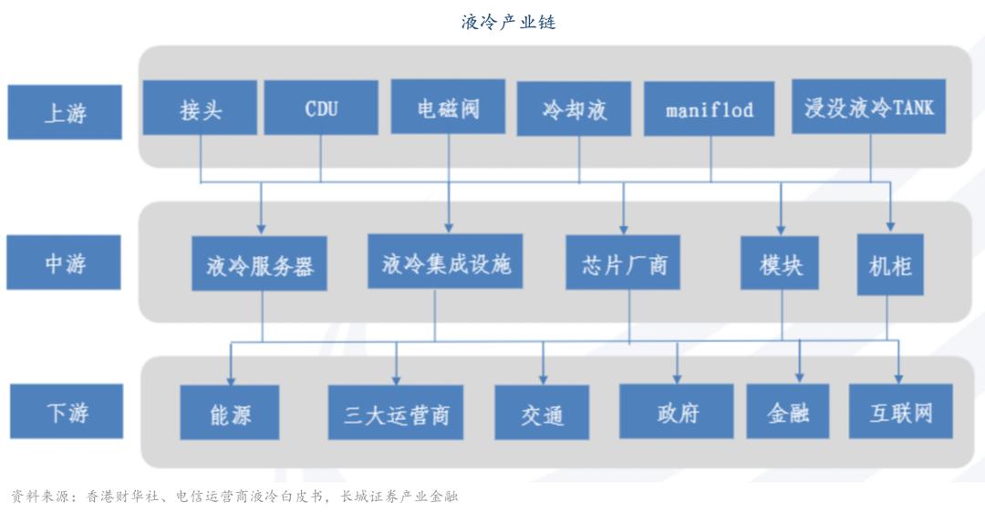 AI等新的應用場景出現,對算力設備和承載算力的數據中心均提出更高的要求。在拉動數據中心的需求的同時,伴隨著算力密度的提高,算力設備、數據中心機柜的熱密度都將顯著提高,液冷技術在數據中心散熱和算力設備散熱的全鏈條導入將加快。