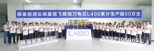 7月22日,蜂巢能源在鹽城基地慶祝飛疊短刀L400電芯累計生產(chǎn)超50萬支。