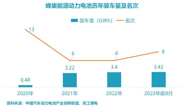 不過,2021年、2022年蜂巢能源動力電池裝機量進入平臺期;2023年上半年,總裝車量也只有2.04GWh——蜂巢能源似乎失去了增長勢頭。