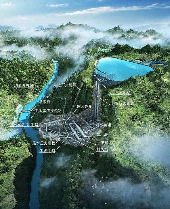 項目位于貴陽市修文縣谷堡鎮(zhèn),地處貴州電網(wǎng)黔中地區(qū)負荷中心,裝機容量150萬千瓦,主要由4臺375兆瓦的可逆式水輪發(fā)電機組、上水庫、下水庫、輸水系統(tǒng)、地下廠房、地面開關(guān)站及場內(nèi)永久道路等組成。