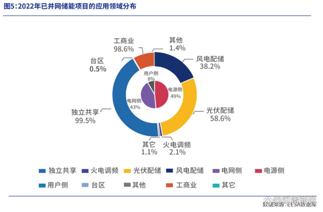 以此來計(jì)算,風(fēng)光配儲項(xiàng)目占2022年已并網(wǎng)儲能項(xiàng)目的比例高達(dá)47.4%,規(guī)模比例排第一位。
