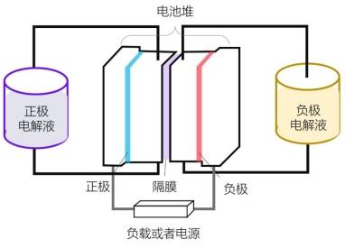 液流電池作為電化學(xué)儲(chǔ)能技術(shù)之一,其將陰陽(yáng)極電解液分別通過(guò)管路推入電堆中,通過(guò)活性元素的價(jià)態(tài)變化,在電能和化學(xué)能之間產(chǎn)生轉(zhuǎn)換來(lái)實(shí)現(xiàn)充放電。由于液流電池是將能量?jī)?chǔ)存于水性電解液中,且能量轉(zhuǎn)化不依賴(lài)于固體電極,因此沒(méi)有燃燒爆炸的風(fēng)險(xiǎn),符合儲(chǔ)能的安全需求。