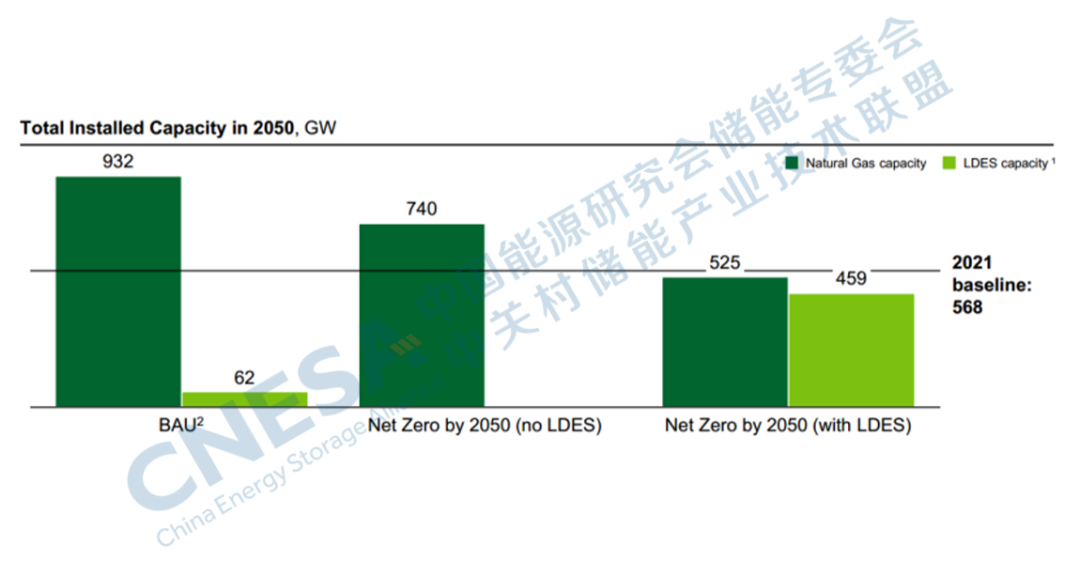 圖2:2050年實現(xiàn)BAU和Net Zero脫碳目標下的LDES預測