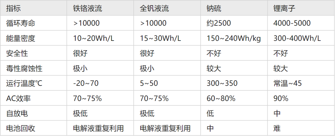 圖說:液流電池(鐵鉻、全釩)與其他電化學(xué)電池技術(shù)對比 來源:知乎