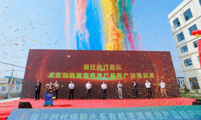 圖說:水系有機(jī)液流電池投產(chǎn)啟幕 來源:宿遷時(shí)代儲能