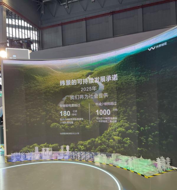 11月6日,澎湃新聞記者從緯景儲能位于進博會的展臺現(xiàn)場了解到,緯景儲能承諾 從2025年起為社會提供超過180億度的年儲能電量,相當(dāng)于690萬輛新能源車一年所需電量,年減少碳排放超過1000萬噸,相當(dāng)于1000萬畝森林一年所吸收的二氧化碳。