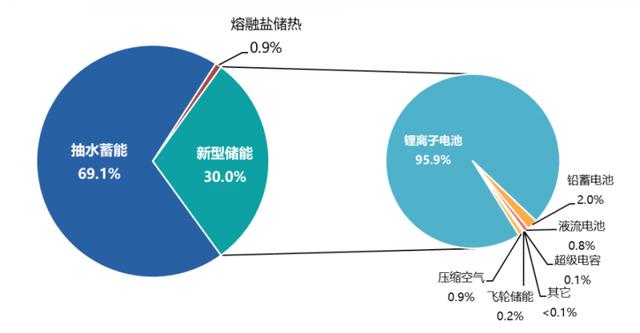 新型儲能是指除抽水蓄能以外的新型儲能技術(shù),包括鋰離子電池、液流電池、壓縮空氣、飛輪儲能、儲熱蓄冷、氫儲能等。相較于傳統(tǒng)抽水蓄能,新型儲能具有響應(yīng)速度快、建設(shè)周期短、調(diào)節(jié)性能高、選址布局靈活等優(yōu)勢。既可以發(fā)揮傳統(tǒng)儲能的“蓄水池”作用,在新能源發(fā)電量多的時候?qū)⒍嘤嚯娏績Υ?又可以發(fā)揮“充電寶”的效用,在發(fā)電量少的時候,向電網(wǎng)送電,促使整體電力系統(tǒng)安全穩(wěn)定運行。