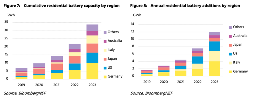 圖7:累計戶用電池容量(以區(qū)域計)圖8:年度戶用新增電池(以區(qū)域計)