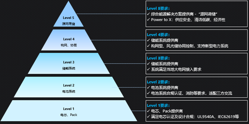 第一層是電芯和PACK提供商,主要聚焦產(chǎn)品性能提升和認證的準入,通過海外市場認證,就可以供應(yīng)給系統(tǒng)集成商;第二層是電池系統(tǒng)提供商,聚焦交流系統(tǒng)的適配和產(chǎn)品標準化,在通過認證之外,還要做好安全和消防等方面的設(shè)計,主要面向還是系統(tǒng)集成商;第三層次是儲能系統(tǒng)供應(yīng)商,需要在電網(wǎng)準入、后期運維兩個方面滿要求。