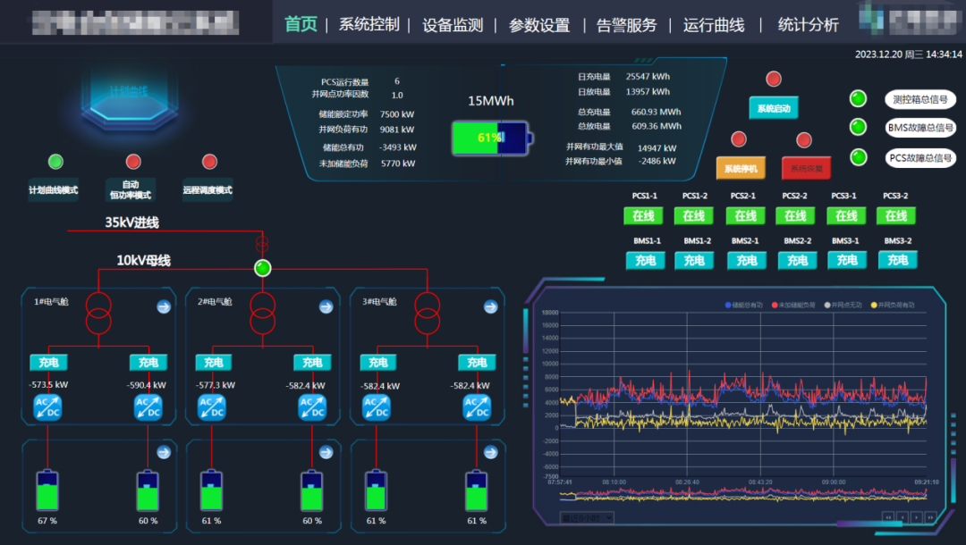項(xiàng)目應(yīng)用中,禾望能量管理系統(tǒng)為工商業(yè)儲(chǔ)能提供更智能、更安全、更高效的能量管理。一方面,通過連接本地監(jiān)控和物聯(lián)網(wǎng)云平臺(tái),實(shí)時(shí)監(jiān)控能源設(shè)備的運(yùn)行狀態(tài)、實(shí)現(xiàn)遠(yuǎn)程數(shù)據(jù)監(jiān)視和控制。另一方面,利用谷峰價(jià)差,依托廠區(qū)/園區(qū)負(fù)荷,在不觸發(fā)逆流和超出最大需量的前提情況下,進(jìn)行削峰填谷,獲取尖峰平谷的電價(jià)差收益。