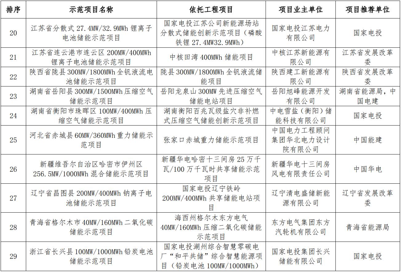國家能源局綜合司關(guān)于公示新型儲能試點示范項目的通知