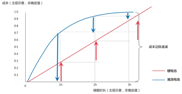 在結(jié)構(gòu)層面,鋰離子電池將功率輸出與能量儲存裝置緊密結(jié)合。如果要增加儲能時(shí)長,就要等比例增加電池成本。因此,4小時(shí)儲能系統(tǒng)的電池成本相當(dāng)于1小時(shí)儲能系統(tǒng)成本的4倍。鋰離子電池在長時(shí)儲能領(lǐng)域并不具備經(jīng)濟(jì)性。