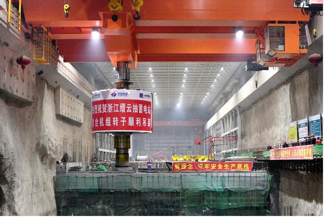 1月3日,國網(wǎng)新源浙江縉云抽水蓄能電站首臺機(jī)組轉(zhuǎn)子在兩臺250噸橋機(jī)合力吊裝下,跨越5個機(jī)坑,順利落入首臺機(jī)組機(jī)坑處。該電站首臺機(jī)組轉(zhuǎn)子的順利吊裝,標(biāo)志著首臺機(jī)組大件設(shè)備吊裝結(jié)束,正式進(jìn)入總裝階段。