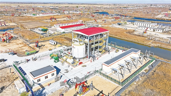 遼河油田電熱熔鹽儲(chǔ)能注汽試驗(yàn)站:世界首座電熱熔鹽儲(chǔ)能注汽試驗(yàn)站。目前常見(jiàn)的熔鹽儲(chǔ)能方式是把光熱或谷電、綠電轉(zhuǎn)化為熱能儲(chǔ)存在熔鹽中,再通過(guò)全天連續(xù)釋放熱能與純凈水換熱產(chǎn)生過(guò)熱蒸汽用于發(fā)電。該試驗(yàn)站通過(guò)獨(dú)創(chuàng)的蒸汽發(fā)生系統(tǒng),將油田開(kāi)采過(guò)程中產(chǎn)生的污水凈化軟化后與高溫熔鹽換熱,產(chǎn)生的濕飽和蒸汽直接用于油田生產(chǎn),可有效減少能量轉(zhuǎn)換過(guò)程中的消耗。該試驗(yàn)站每年可生產(chǎn)蒸汽4.8萬(wàn)噸,替代天然氣313萬(wàn)立方米,減排二氧化碳6768噸。(羅前彬 整理)