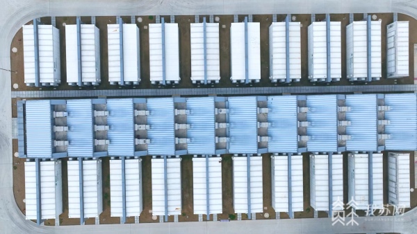 88個(gè)白色電池倉(cāng),就是一個(gè)個(gè)儲(chǔ)能電池,加起來(lái)足有11.088萬(wàn)千瓦,存儲(chǔ)容量19.36萬(wàn)千瓦時(shí),相當(dāng)于一個(gè)19萬(wàn)千瓦的中型發(fā)電廠1個(gè)小時(shí)發(fā)的電,可以同時(shí)滿足2.6萬(wàn)戶家庭一天用電。