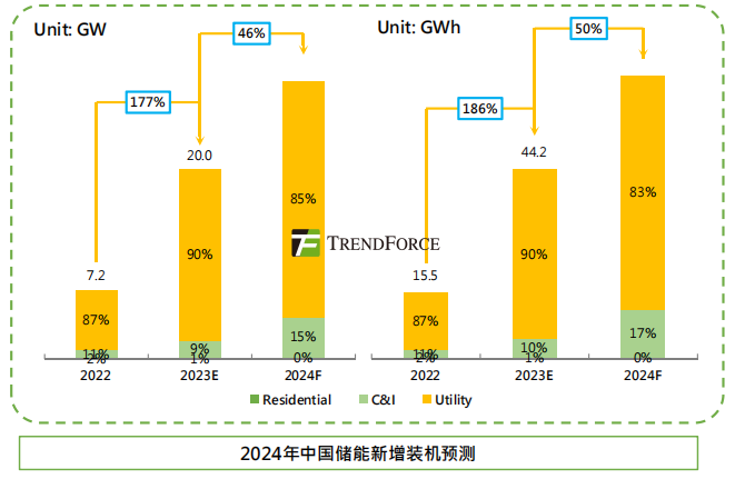 中國裝機預測:據(jù)集邦咨詢預測,2024年中國儲能新增裝機將達29.2GW/66.3GWh,其中工商業(yè)儲能有望達到4.3GW/11.2GWh。