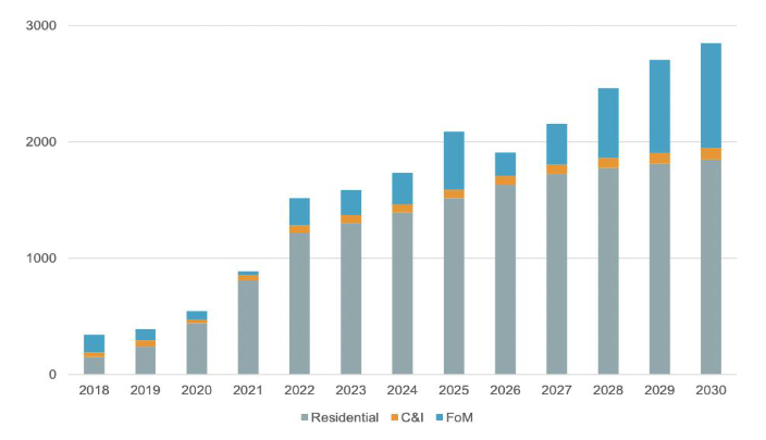 圖:2023-2030德國新增儲能裝機預測(MW)
