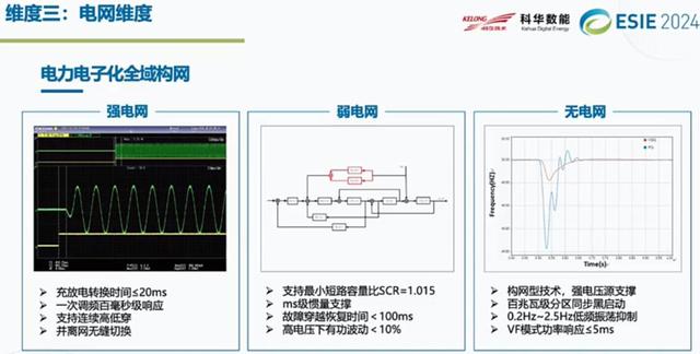 第三個(gè)創(chuàng)新維度就是電網(wǎng)側(cè)?,F(xiàn)在的電力電子化,不管是光伏也好,儲(chǔ)能也好,對(duì)電網(wǎng)提出很大挑戰(zhàn)。當(dāng)前的一個(gè)構(gòu)網(wǎng),我們提出在強(qiáng)電網(wǎng)、弱電網(wǎng)甚至無(wú)電網(wǎng)的情況下面,新型儲(chǔ)能如何適應(yīng)電網(wǎng)的各種需求。