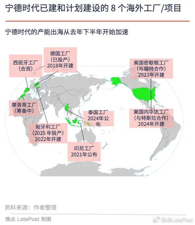 此前,寧德時(shí)代已披露了 6 個(gè)海外工廠計(jì)劃,分別是:德國(guó)圖林根工廠、匈牙利工廠、美國(guó)密歇根工廠(與福特合作)、美國(guó)內(nèi)華達(dá)工廠(與特斯拉合作)、印尼工廠和泰國(guó)工廠。