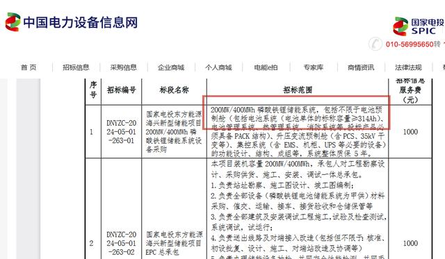 除了單采314Ah電芯外,Q2已多次出現(xiàn)對314Ah電芯單體容量要求的儲能系統(tǒng)項目。4月16日,運達股份發(fā)布1500V液冷儲能系統(tǒng)項目框采,明確儲能電池單體為314Ah電池;4月18日,興泰公司發(fā)布110MW/240MW釩鋰結合電網(wǎng)側獨立儲能電站項目,要求采用單體磷酸鐵鋰電芯容量為314Ah;5月10日,國家電投東方能源海興新型儲能項目200MW/400MWh磷酸鐵鋰儲能系統(tǒng)設備采購招標公告發(fā)布,明確要求儲能系統(tǒng)電池單體的標稱容量≥314Ah;5月14日,中國石油濟柴動力發(fā)布5MWh液冷儲能系統(tǒng)招標公告,明確指出電池采用不低于314Ah的磷酸鐵鋰電池……