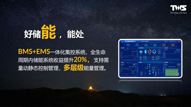 新品BMS+EMS采用一體化集控系統(tǒng),使得全生命周期內(nèi)儲(chǔ)能系統(tǒng)收益提升20%;并且支持需量動(dòng)靜態(tài)控制管理,做到多層級能量管理;結(jié)合智能優(yōu)化算法和云平臺(tái)遠(yuǎn)程監(jiān)控,AI模型自學(xué)習(xí)優(yōu)化、實(shí)時(shí)診斷健康狀態(tài)、出具數(shù)據(jù)報(bào)告分析,以精準(zhǔn)科學(xué)的“能源管理方案”助力工商業(yè)儲(chǔ)能高效設(shè)計(jì)運(yùn)營。