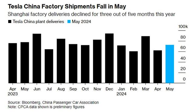 智通財(cái)經(jīng)獲悉,5月,特斯拉(TSLA.US)上海工廠的交付量今年以來(lái)第三次同比下滑,與競(jìng)爭(zhēng)對(duì)手的強(qiáng)勁增長(zhǎng)形成鮮明對(duì)比,也進(jìn)一步顯示出在中國(guó)爭(zhēng)奪客戶的激烈競(jìng)爭(zhēng)。